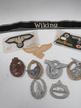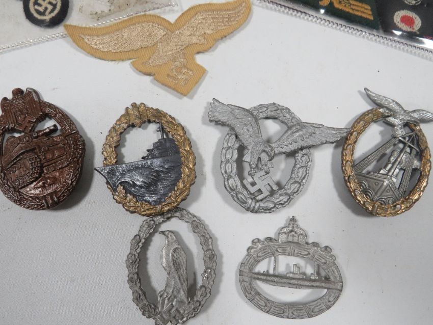 A COLLECTION OF MILITARY TYPE BADGES AND PATCHES