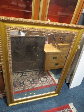 A LARGE MODERN GILT MIRROR AND AN OAK OVAL MIRROR (2)