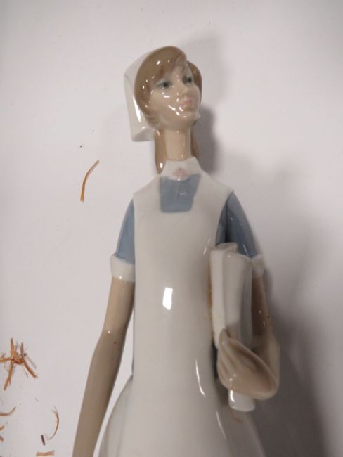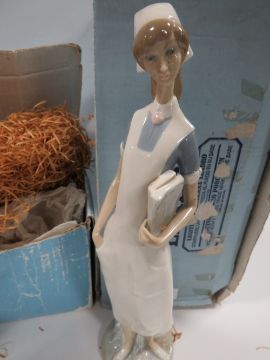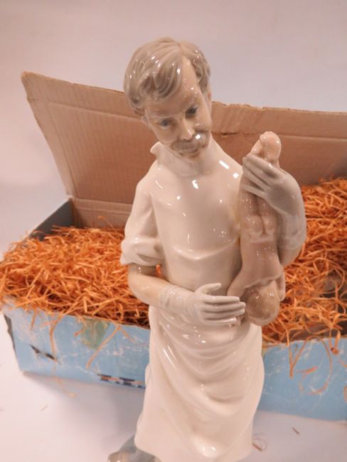 A LLADRO FIGURE OF A DOCTOR HOLDING A NEW BORN BABY TOGETHER WITH A LLADRO FIGURE OF A NURSE IN ORIGINAL BOXES