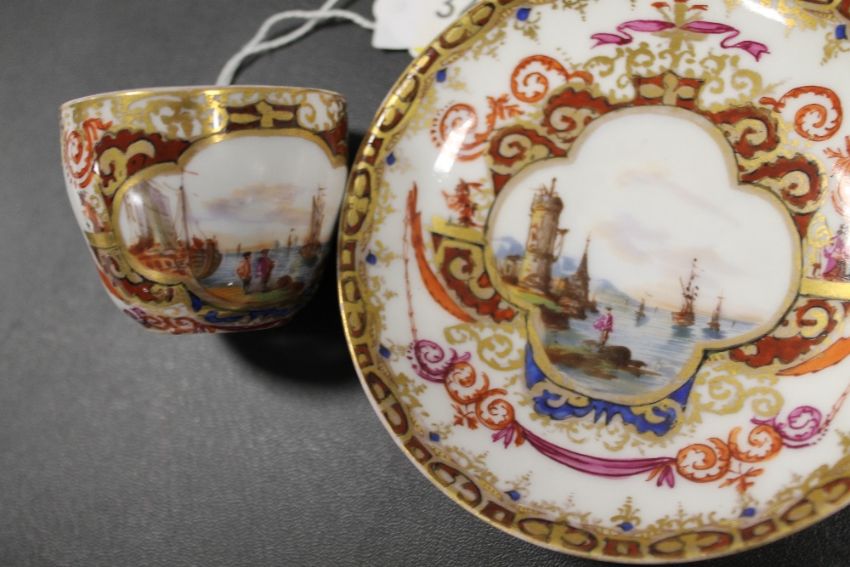 AUGUSTUS REX (MEISSEN) HAND PAINTED CABINET CUP AND SAUCER