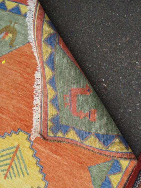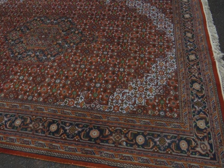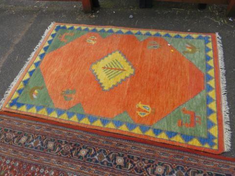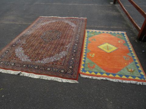 A large Eastern woollen rug together with a smaller modern woollen rug