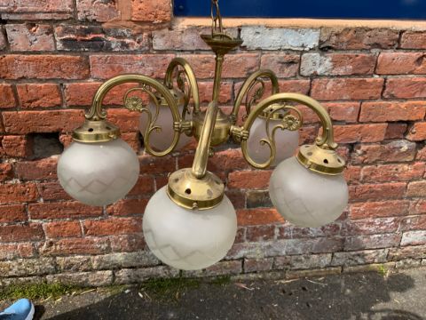 Three early 20th century chandelier light fittings with etched and moulded decoration