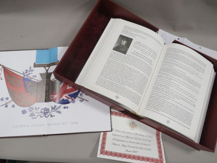 GRANVILLE STACEY ANGELL - VOLUME OF VALOUR - PUBLISHED PRIVATELY BY THE AUTHOR 2017 DELUX EDITION LIMITED TO 25 HAND MADE CASE BOUND COPIES PRODUCE IN MARROON ANGUS GRAINED GOATSKIN LEATHER TOGETHER WITH ADDENDUM 2018 -SIGNED BY AUTHOR, MARKS ON CASE