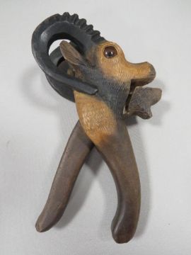 A BLACK FOREST STYLE NUTCRACKER IN THE FORM OF A GOAT COMPLETE WITH GLASS EYES