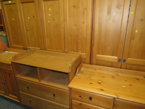 Three modern IKEA double wardrobes together with three IKEA chests