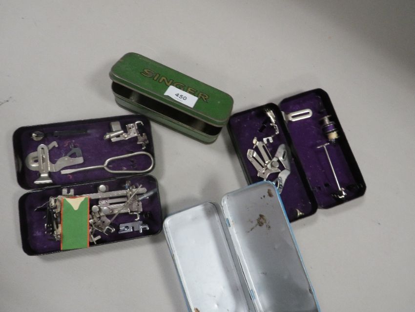 A SMALL SELECTION OF SEWING MACHINE ACCESSORIES TO INCLUDE SINGER