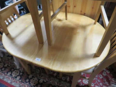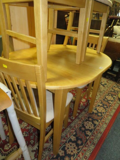 A modern beech style kitchen table and four chairs