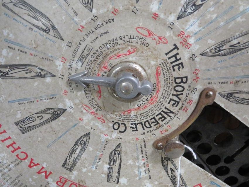 THE CHICAGO BOYE NEEDLE Co. MERCHANDISE DISPLAY CIRCA 1906, to display needles, shuttles and bobbins for use in general stores, Dia. 41 cm