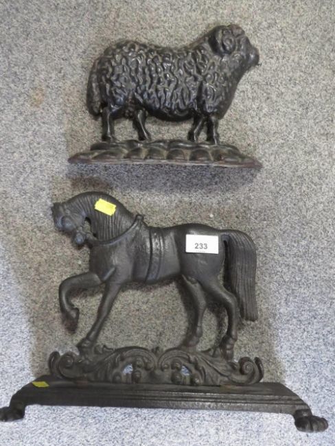 TWO CAST IRON DOOR STOPS IN THE FORM OF A HORSE AND A SHEEP