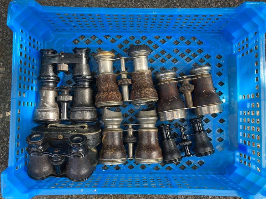 Tray containing 7 pairs of vintage Opera glasses