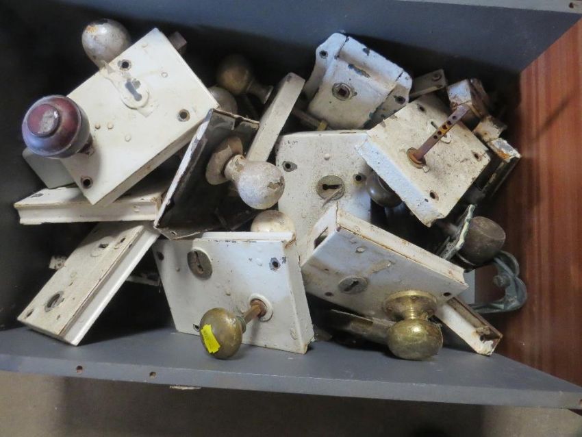 TWO BOXES OF VINTAGE DOOR LOCKS AND HANDLES