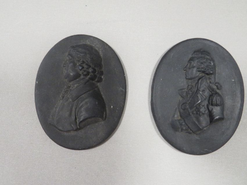 TWO WEDGWOOD STYLE BASALT PLAQUES OF NELSON AND JOSIAH WEDGWOOD