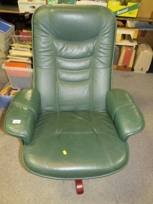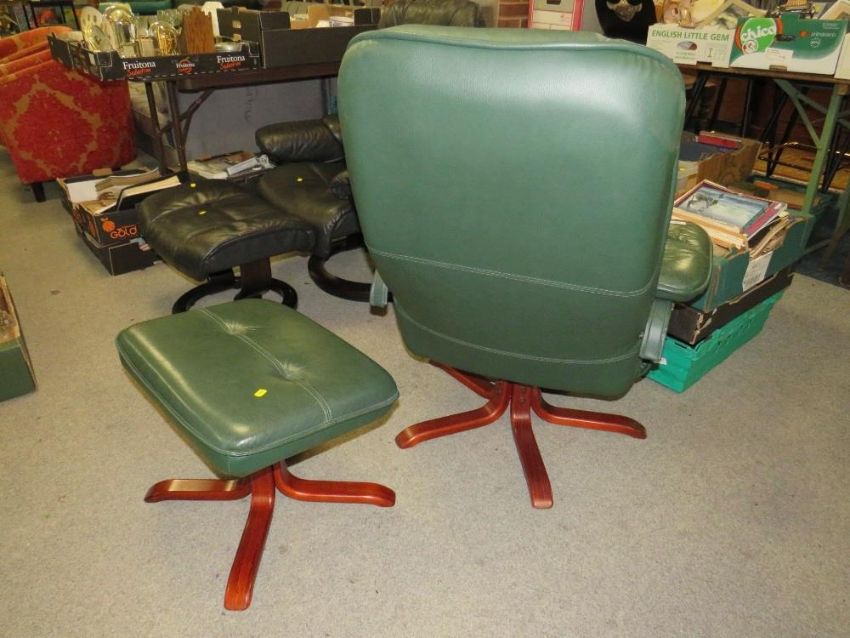 A modern green Stressless style armchair and footstool