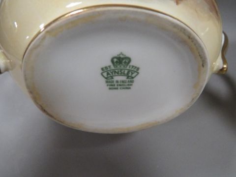AYNSLEY 'ORCHARD GOLD' TEAPOT, MILK JUG AND SUGAR POT - SIGNED
