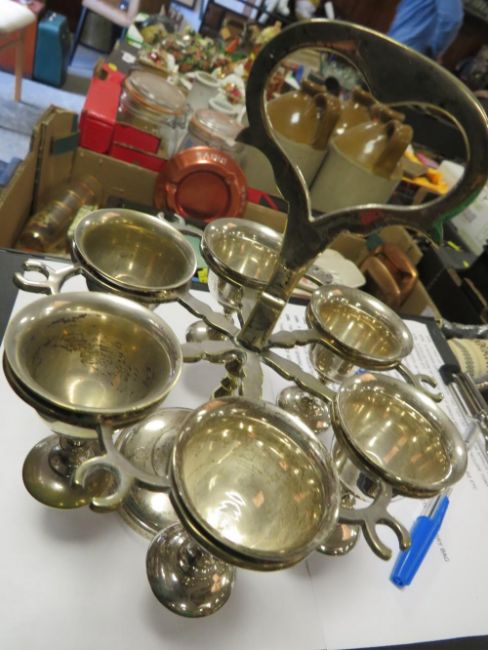 A TRAY OF SILVER PLATED WARE TO INCLUDE A PIERCED TWIN HANDLED GALLERY TRAY