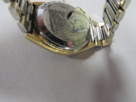 A SEIKO WRISTWATCH, BATTERY COVER MISSING