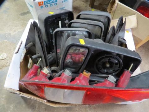 A large selection of van / car lights and door mirrors
