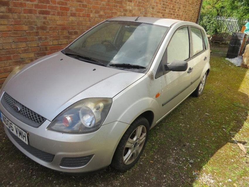 A 2006 silver petrol Ford Fiesta 'ND06 VMH', currently SORN, last MOT milage at 24th June 2019 was 28,130 and MOT expired 24 Dec 2020, complete with one key and log book