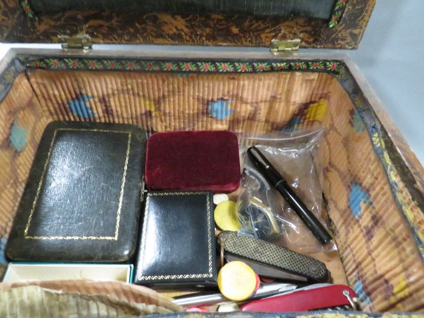 A decorative box containing various collectables