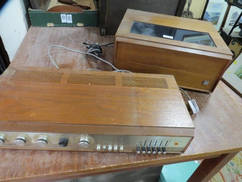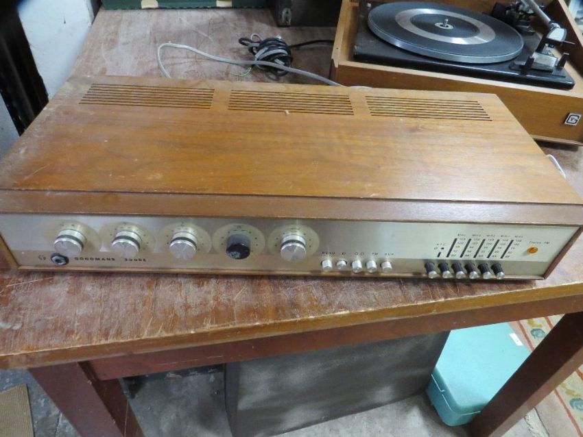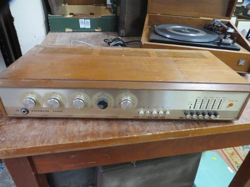 A retro Goodmans / Garrard music suite stereo record player together with a Goodmans 3000E radio receiver / amplifier