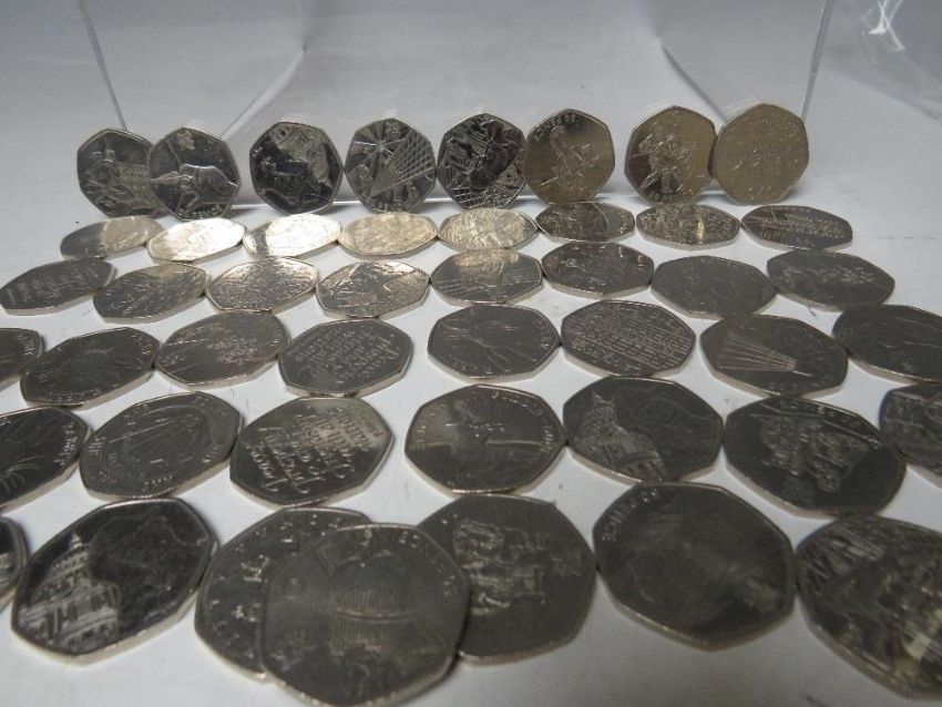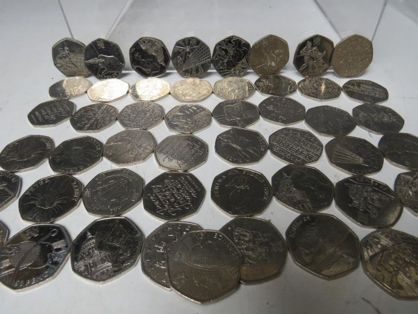 FORTY NINE COMMEMORATIVE 50 PENCE COINS, to include London Olympics types, Beatrix Potter, WWF and Paddington Bear (49)
