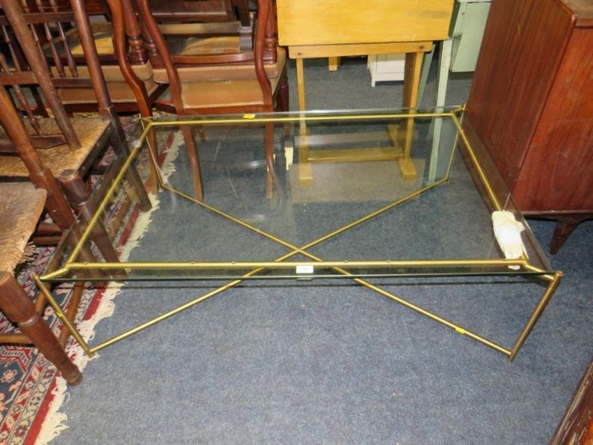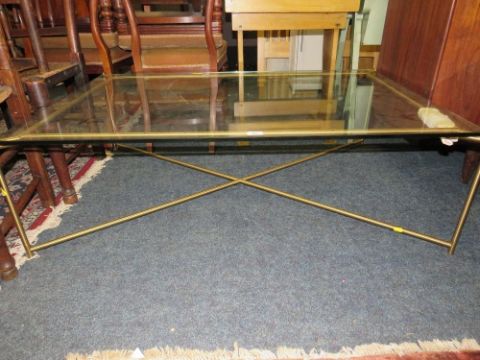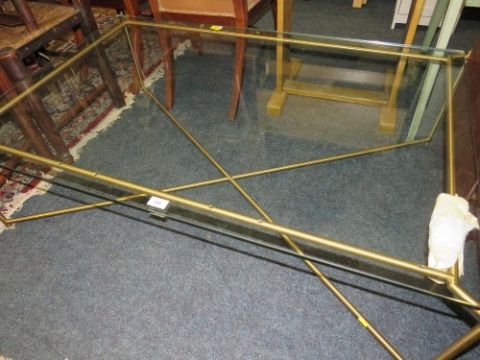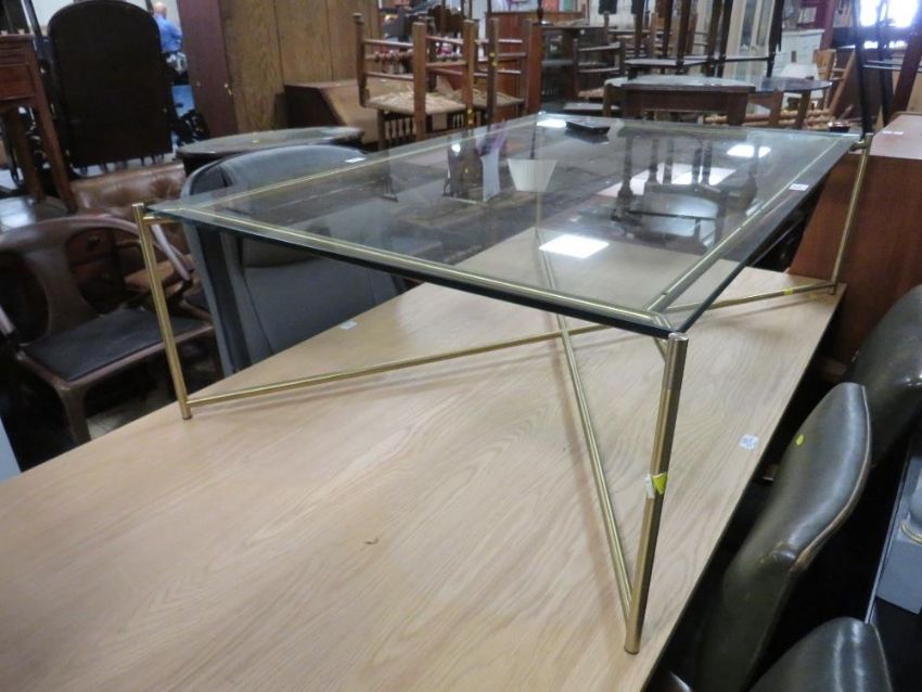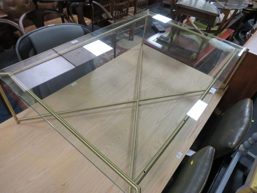 A MODERN GLASS AND METAL OFFICE TABLE 122CM X 82.5CM