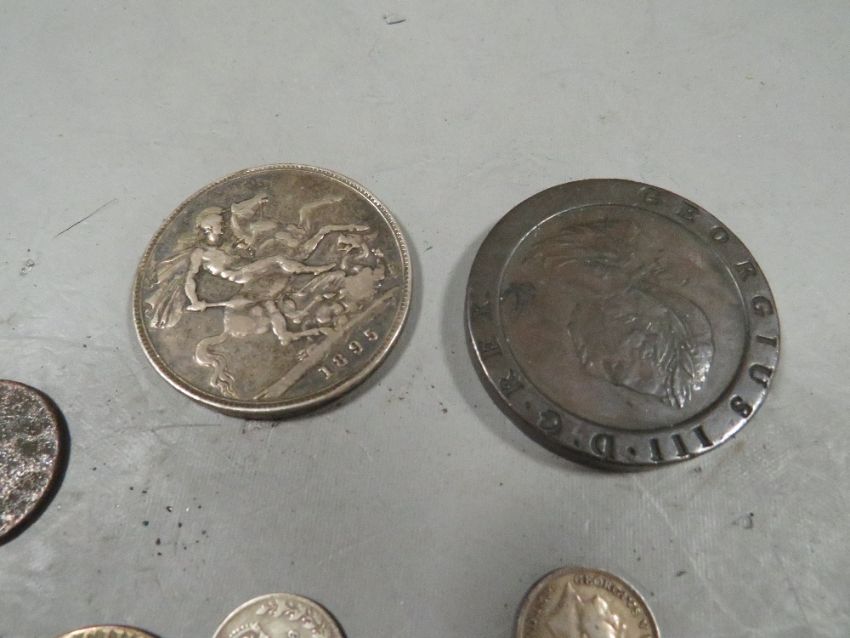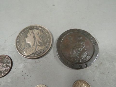 A small tub of collectable coinage to include 1895 crown