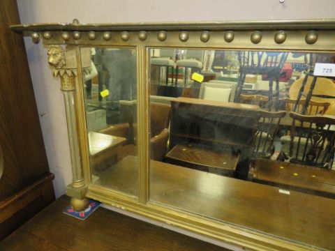 An antique gilt over mantel mirror with lion head masks W 135 cm
