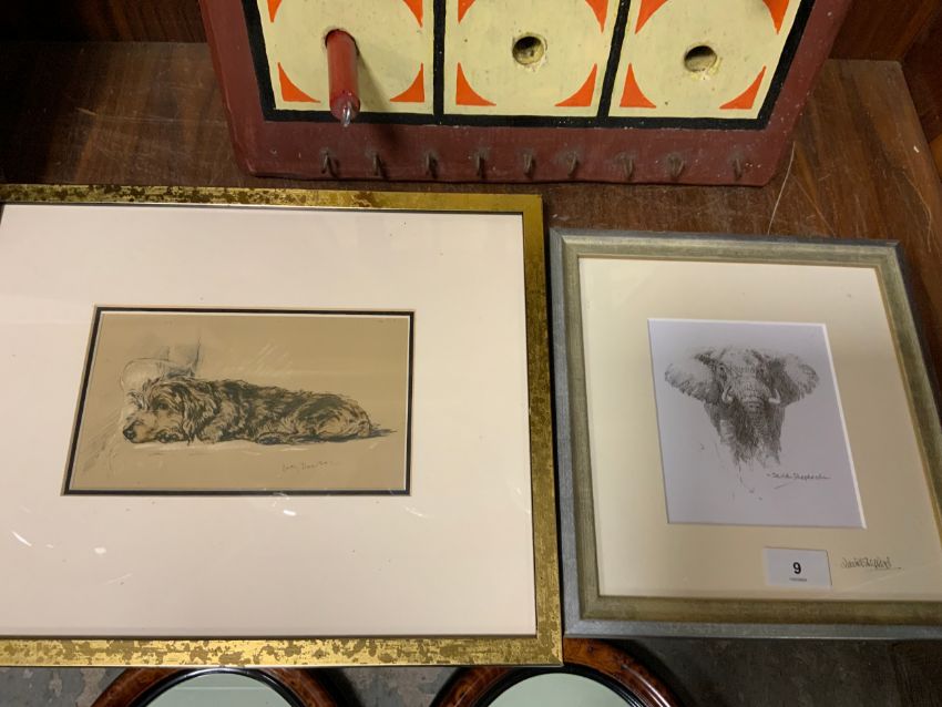 A collection of six framed oval KYD prints together with a David Shepherd dog print, etc.