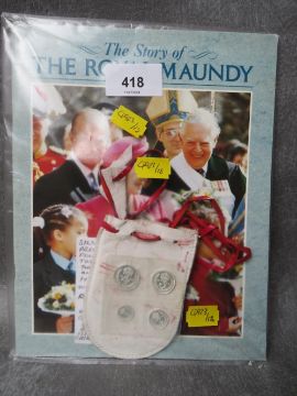 A QEII Maundy set, 1d, 2d, 3d and 4d, sealed in plastic sheet, with white leather pouch and booklet
