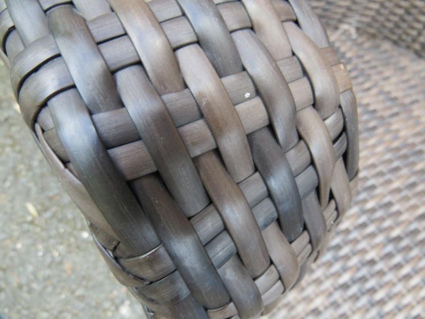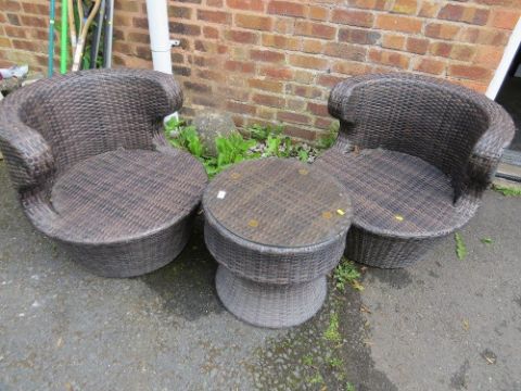 A rattan PVC garden patio table and two chair set