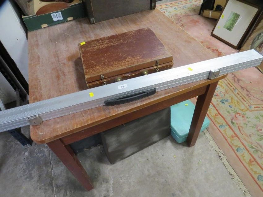 A boxed snooker cue and a set of snooker balls