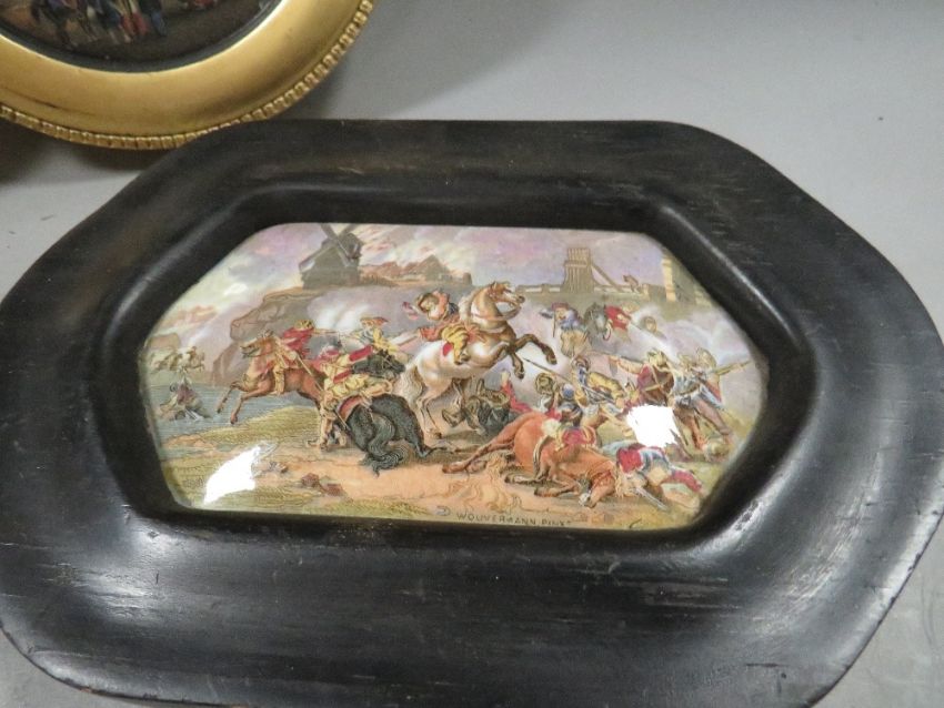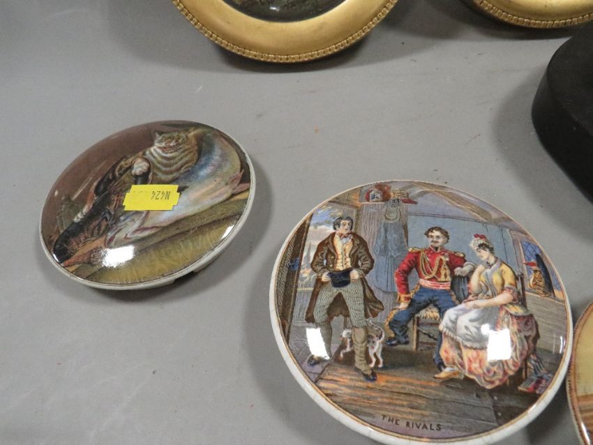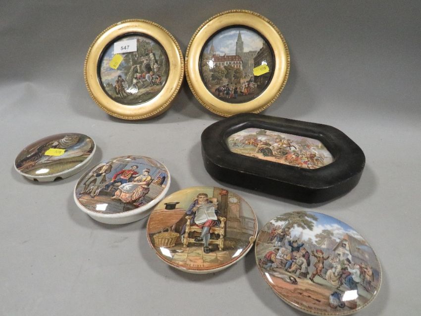 A collection of seven Pratt ware painted ceramic lids - three framed