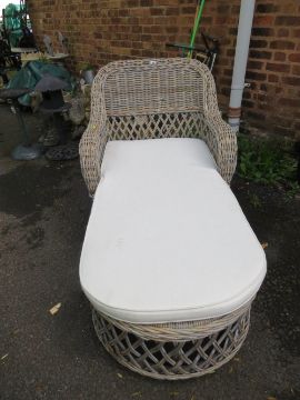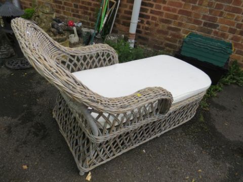 A wicker conservatory chaise longue