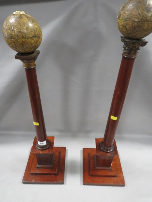 A rare pair of 19th century Masonic temple globes, the celestial and terrestrial globes by Smith London, tallest 70cm