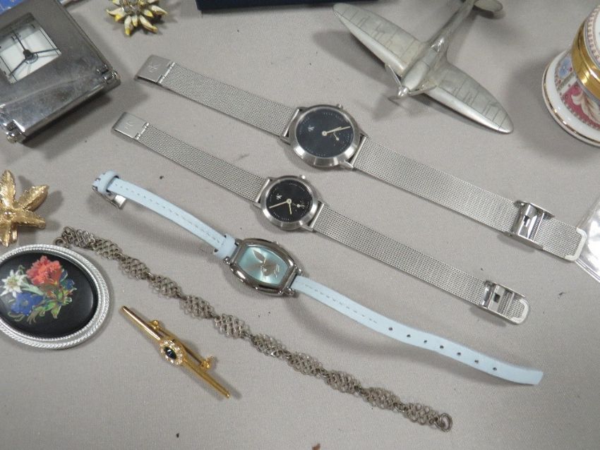 A jewellery box and contents to include coins etc