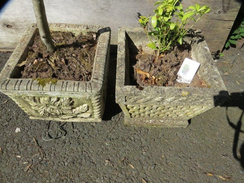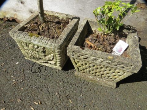 Two concrete garden planters
