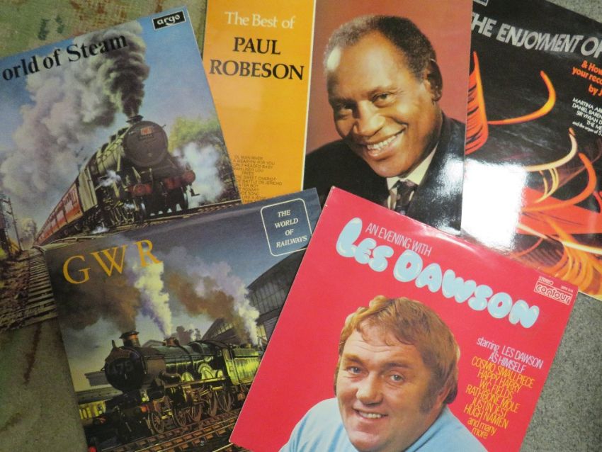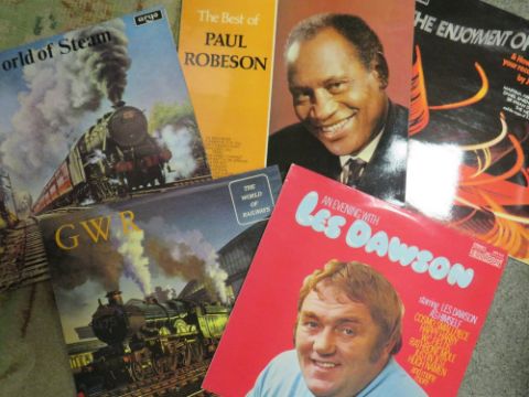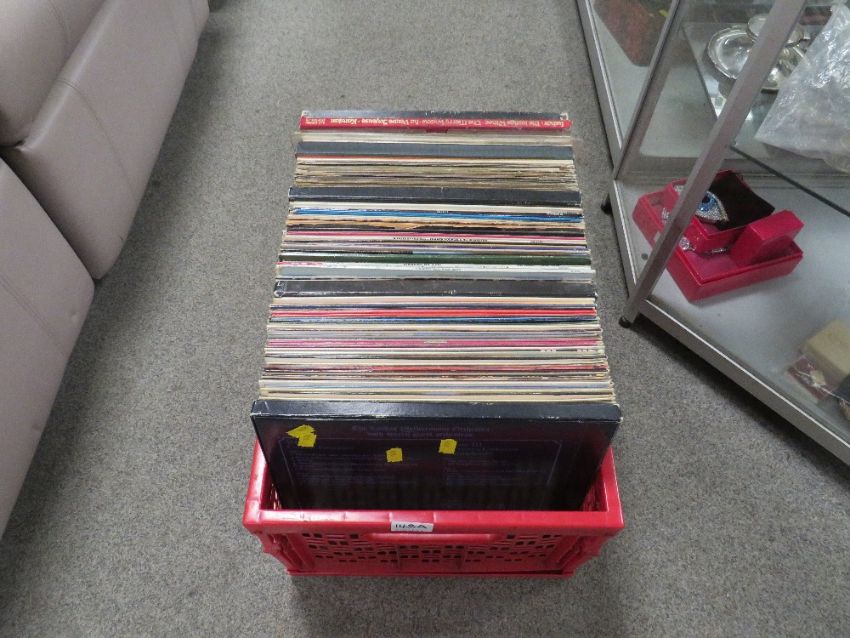 A vintage angle poise lamp together with a tray of assorted LP records