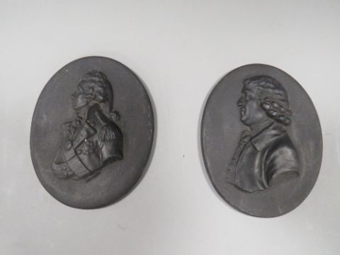 Two Wedgwood style Basalt plaques of Nelson and Josiah Wedgwood