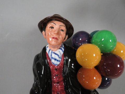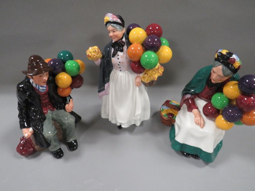 Three Royal Doulton Balloon figurines comprising Balloon Man, Balloon Woman and Biddy Penny Farthing