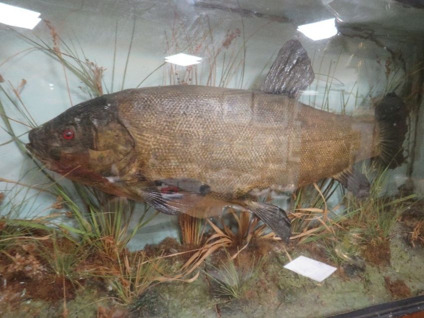 A cased taxidermy tench