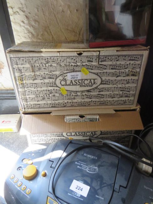 A collection of assorted records, cd's and radios etc., together with a pair of speakers