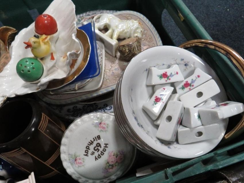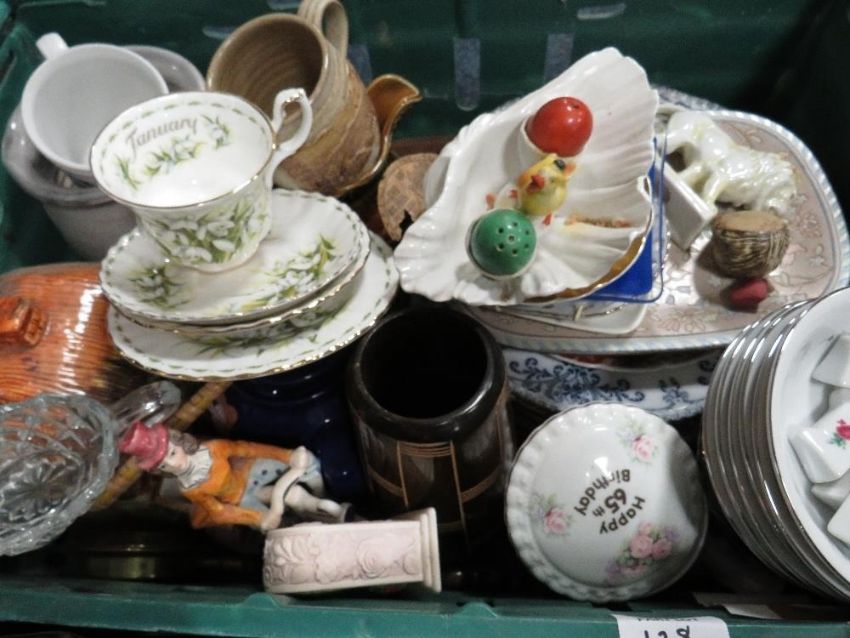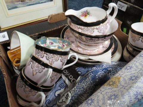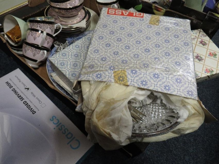 Three trays of assorted tea ware, ceramics etc to include Royal Albert, Wedgwood and Denby