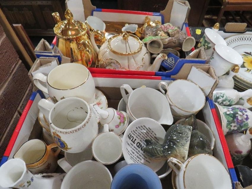 Four trays of assorted ceramics to include a collection of Bing & Grondahl limited edition plates , continental gilt coffee set etc