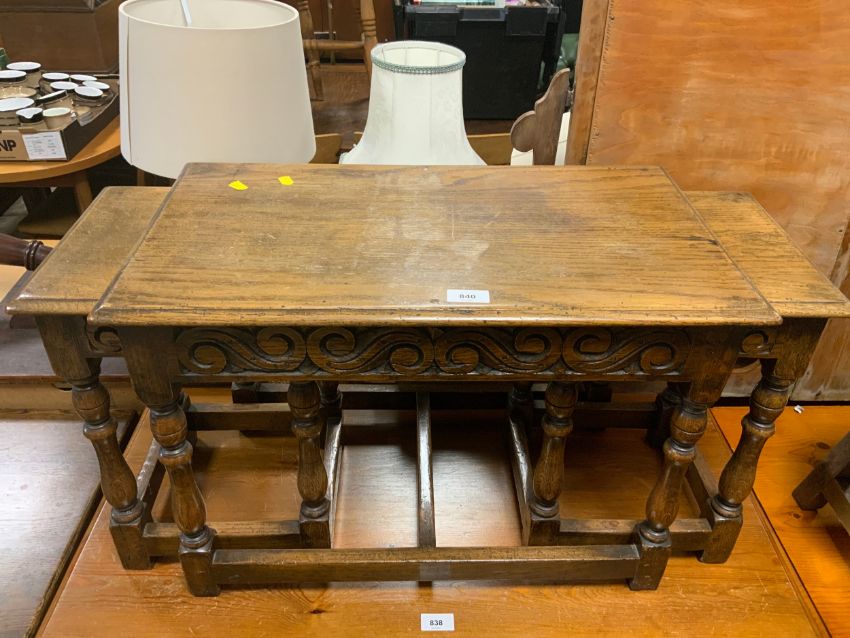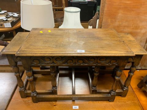 An oak carved nest of tables