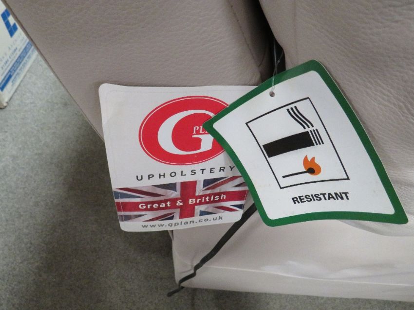 A pair of modern cream, leather electric reclining, two seater settees