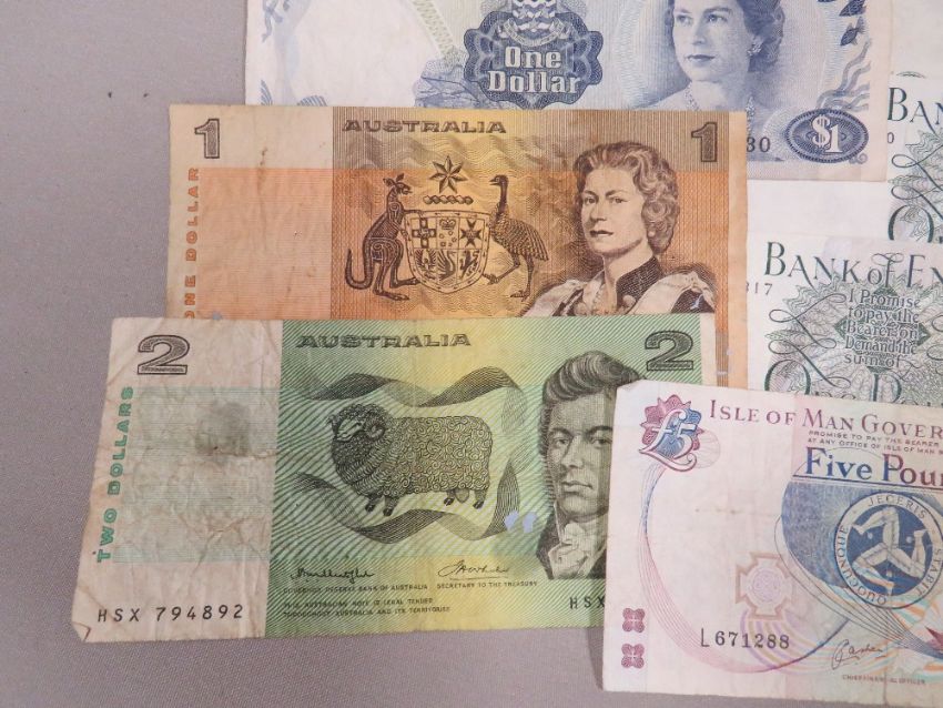 British and Commonwealth banknotes, to include an Isle of Man five pounds