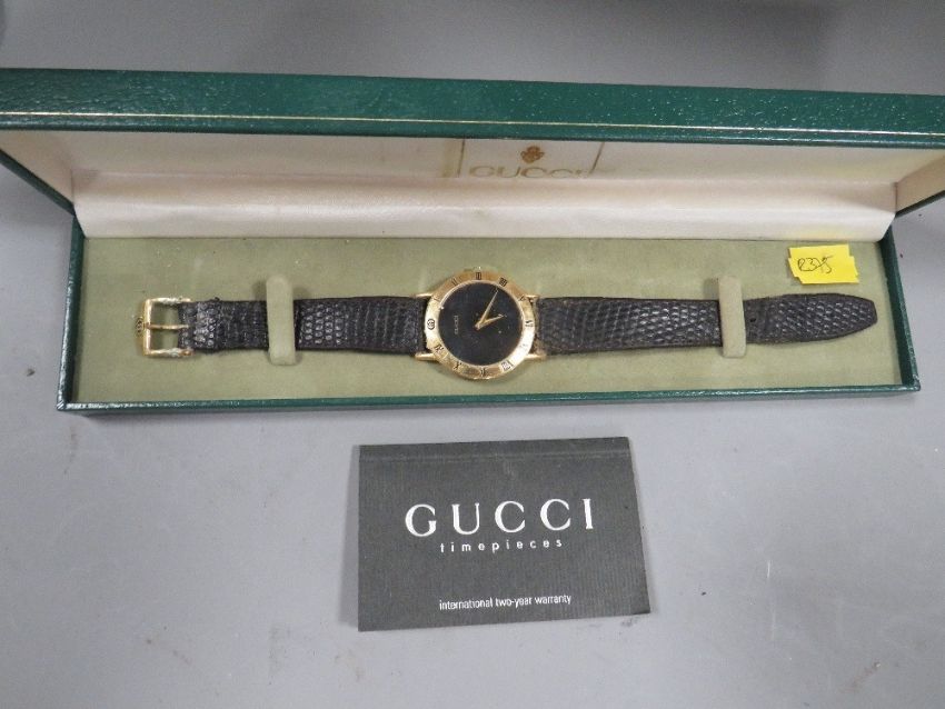 A Gucci watch in original box together with guarantee and purchase receipt from 1998