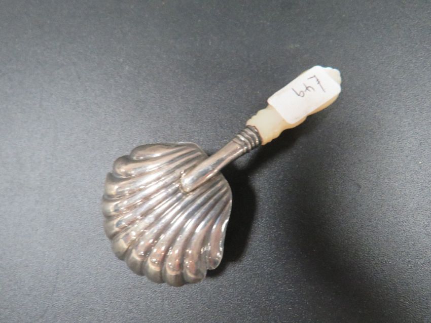 An antique silver caddy spoon