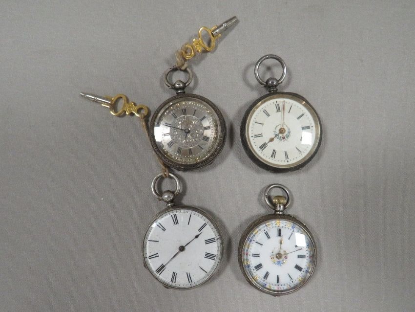 Three antique silver ladies pocket watches